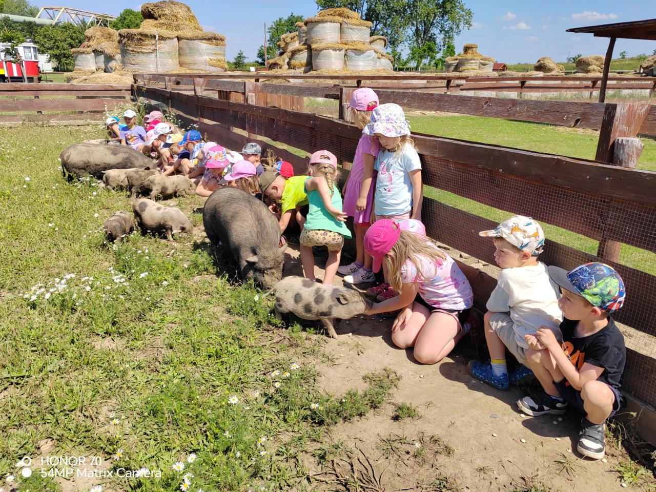 Trampolíny a přelézání balíků slámy